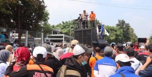 Kegiatan kedua adalah keberangkatan ±650 buruh dari serikat FSPMI, KSPSI, dan KSBSI menuju Gedung Grahadi Surabaya, dengan titik kumpul di PT JA’I.